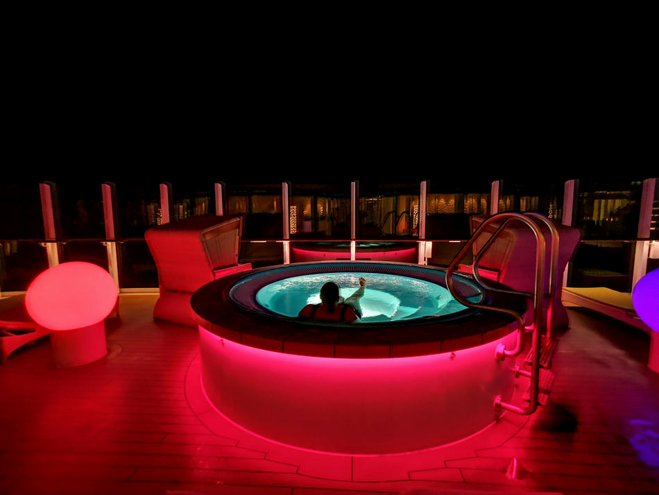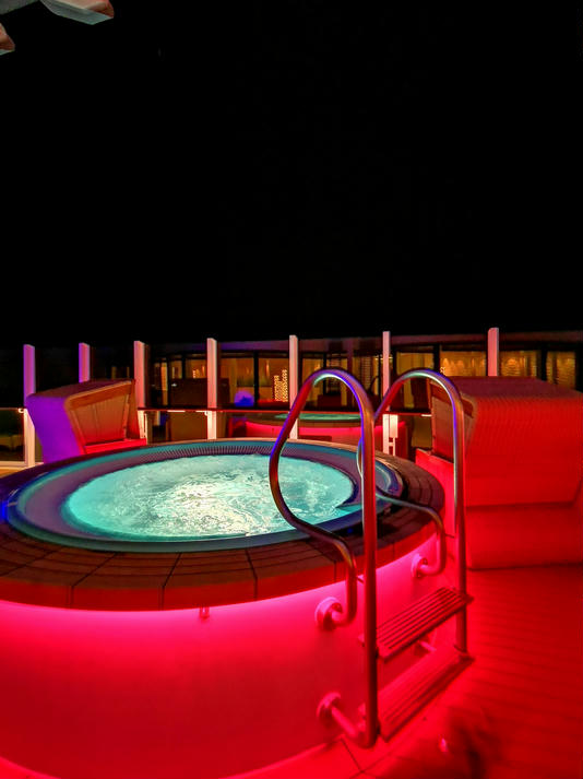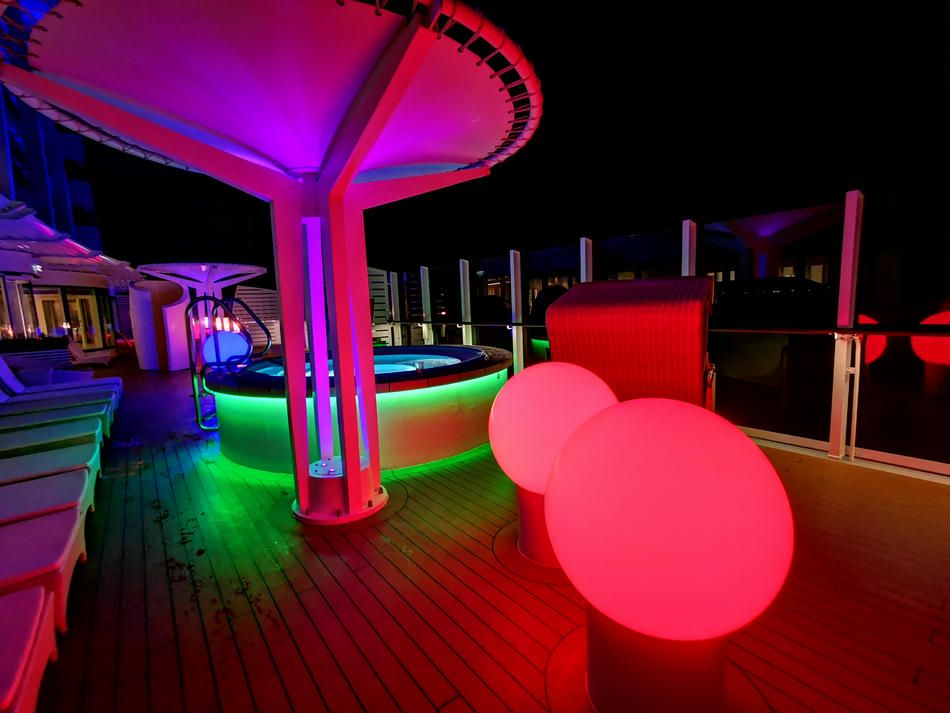 So kann man es sich wirklich gut gehen lassen. Wir haben die meiste Zeit einen Whirlpool im Außenbereich in Beschlag genommen. Nach ca. einer Stunde Blubberblasen ist der Wind um ca. 21:30 Uhr etwas frischer geworden und wir haben einen Locationswechsel vollzogen und sind in den Pool im Innenbereich gewechselt.