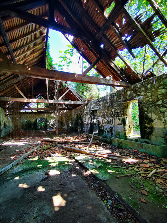 Der zweite Stopp war eine weitere alte Ruine an den Feldern – dieses mal aber eine ziemlich große. Hier, mitten im Dschungel, haben früher tatsächlich viele Leute geschuftet und das Zuckerrohr manuell verarbeitet. Schon krass! An diesem Stopp haben wir auch noch Getränke bekommen. Der Guide verteilte gekühlte Limonade und berichtete, dass das süße Zeug hier so eine Art regionale Spezialität ist. Wir hatten unter anderem ein rotes Getränk, das irgendwie nach Weihnachten schmeckte, irgendwas mit Nelken und Zimt. Sehr spannend und erfrischend!
