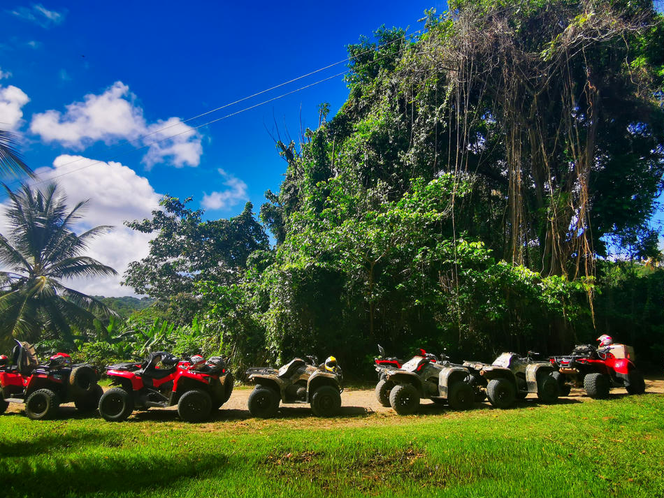 Auf diesen Tag hatten wir uns schon lange gefreut. Wir wollten nämlich immer schon mal Quad fahren, sind bisher aber nie dazu gekommen. Auf St. Lucia haben wir jedoch den Anbieter Aanansi ATV Tours gefunden, der zweistündige ATV-Touren anbietet. Wir haben uns sogar den Luxus gegönnt und darauf verzichtet, uns ein zweisitzer ATV zu teilen, und haben jeder einen eigenes Gefährt gebucht.