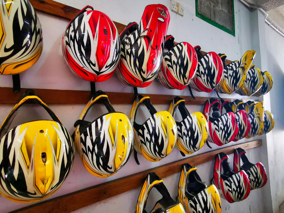 Als wir endlich vollzählig waren, haben wir jeder ein ATV bekommen. Die Fahrzeuge zu fahren ist ganz schön anstrengend, das hätten wir beide gar nicht gedacht. Der Lenker ist ziemlich breit, was man auch braucht, da es keine Lenkunterstützung gibt. Das Gaspedal ist ein Hebel, den man mit dem rechten Daumen betätigen muss. Eine Gangschaltung gibt es (bis auf Vorwärts- und Rückwärtsgang) aber nicht, sodass wir nicht noch schalten mussten.